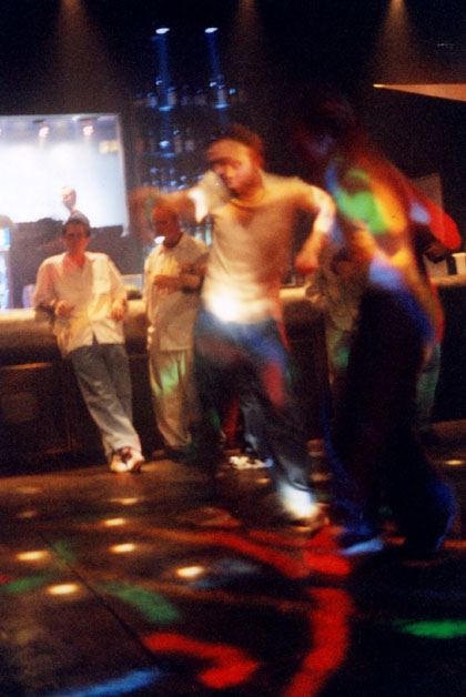 showing the club crowd how to dance, but... |