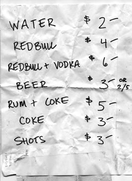 | It was a small room, with just one DJ for the entire party, but it was set up in a way that created two areas. One was the area in front of the DJ, which was loud and lightly crowded with people dancing and watching the DJ. The other area was closer to the entrance. It was louder and roomier, so at first everyone there was dancing. As the night went on, and the constant thump of TECHNO! pounded and pounded and pounded it's way into our brains, people began to synchronize and face the speaker, bobbing their heads in unison to the BWOOPMP BWOOPMP BWOOPMP BWOOPMP.... of the night. I won't try to describe the music, but I will say that it was even better than I expected, and it got better all night long. Holy Shit! We were actually listening to old school TECHNO! I got to hear a bunch of records that were on an old Scott Henry tape that my friend (who got me into partying) gave me back in the day. He got it when he first got into partying, and even then it was considered old. It was nice to hear those old records, since I hadn't listened to any of them for a long time, and I had never listened to them on a big, loud system. Even now, I can happily hear "da dada da dat, da dada da da da da dat .. two bad mice" drowning out the jungle that is permanently stuck in my head. |