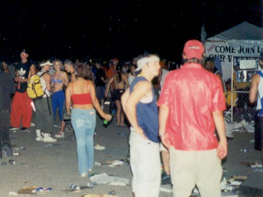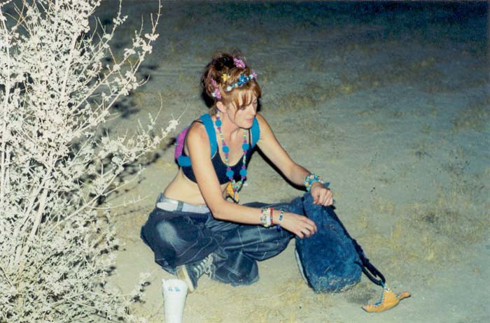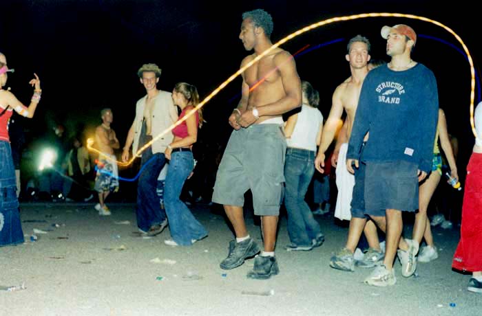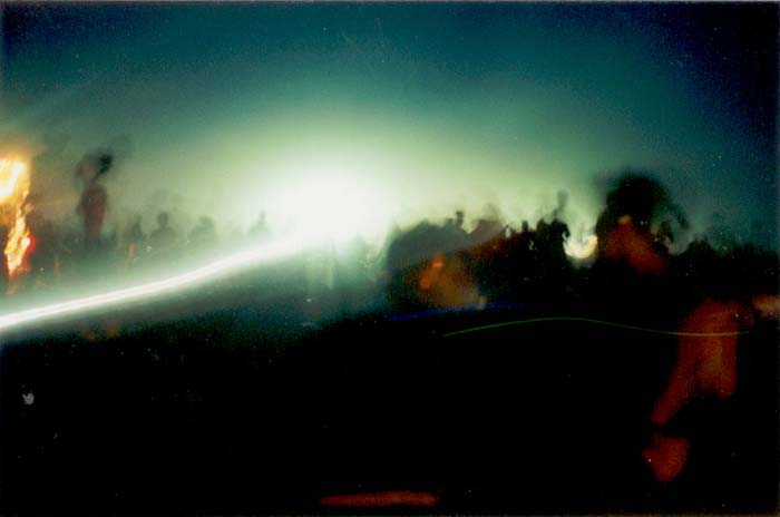 | Wandering from area to area was a journey, but one well worth it. The mile long dancing area seemed so interesting when it was announced on the flyers and website, but actually walking the thing was another story. Most everywhere I went, incredible music was being brought forth, everything from hardcore to hip hop to hard house. I couldn't get enough of it all. The night was definitely confirmed as one truly out of this world, when Rabbit In The Moon took the stage at the last area. That set was nothing short of mind blowing. And the fireworks completed it all for me, when twice they ended kisses that I had given. | |