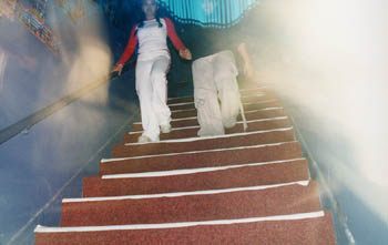 main room crashing into the music in the upstairs room, which