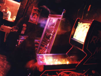 see the guy playing pinball is pretty excited. |