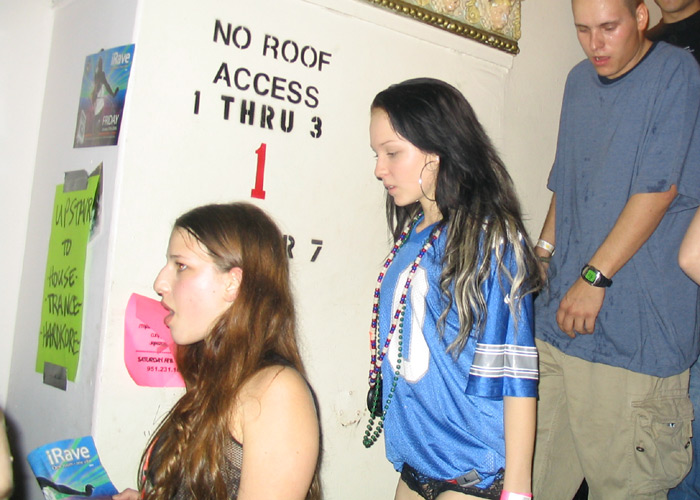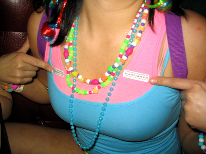 OK, RELAX, you can stop clicking the "reload" button on your browsers now, the pics are up. For all the guys at home looking at these pics, please show some respect to the ladies on this web page, and to all ladies at all times. (Read DO NOT JERK OFF WHILE LOOKING AT THESE PICTURES) If you have not subscribed to the RAVERS DIGEST PDF send an email to raversdigest@gmail.com and you will magically start getting it in your email about once a month. Or if there are a lot of good parties, twice a month. The pdf is really fuckin cool, free, and you can download it to your computer (or leave it in your email as long as you have the storage) The PDF includes additional content not found on the website, like the article that goes along with these pics, and printable coupons for discounts on upcoming parties. |