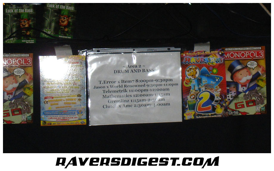 Hey mark I went to Made In Bliss last night ... I took some pictures before my camera died. So what happend there was : It was really nice. After I got over how nice the venue was I decided to wait out side with some of my friends until it got really popin. We kicked it there until around 10:30 ( it wasnt that popin at that time but i wanted to walk around) and I walked to the DnB room which was empty. I stayed in the Hardstyle room most of the night, but did listen to Thee-O who played in the third room. (good set). After dancing to Thee-O's set I got some fresh air, then went to see if that DnB room was popin or not and sadly it wasn't =( I got over it and went back to the hardstyle room where I stayed to hear the Speaker Junkies, whos live performance was sick. After the Speaker Junkies played my ride decided he wanted to leave cuz he was tired and i was thinking the same thing... Raving + Dancing = Me Tired We lost Chris and told our other friends to tell Chris to go to the car, but they came right out said they couldn't find him. We sat in the car and waited for him about half an hour. Then we left and we got lost for awhile and it was cool and then I asked my friends if they can drive me to my house (which is in Laguna) we took the 405 til it met with the 5 and the 405 was really really foggy, we couldn't even see in front of our car. It was scary but way cool. Then pretty much I got home and crawled into bed As I think back on the night I would have to say I had fun and am looking forward to the next party. - Robert