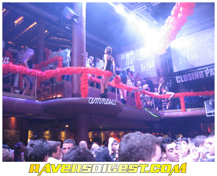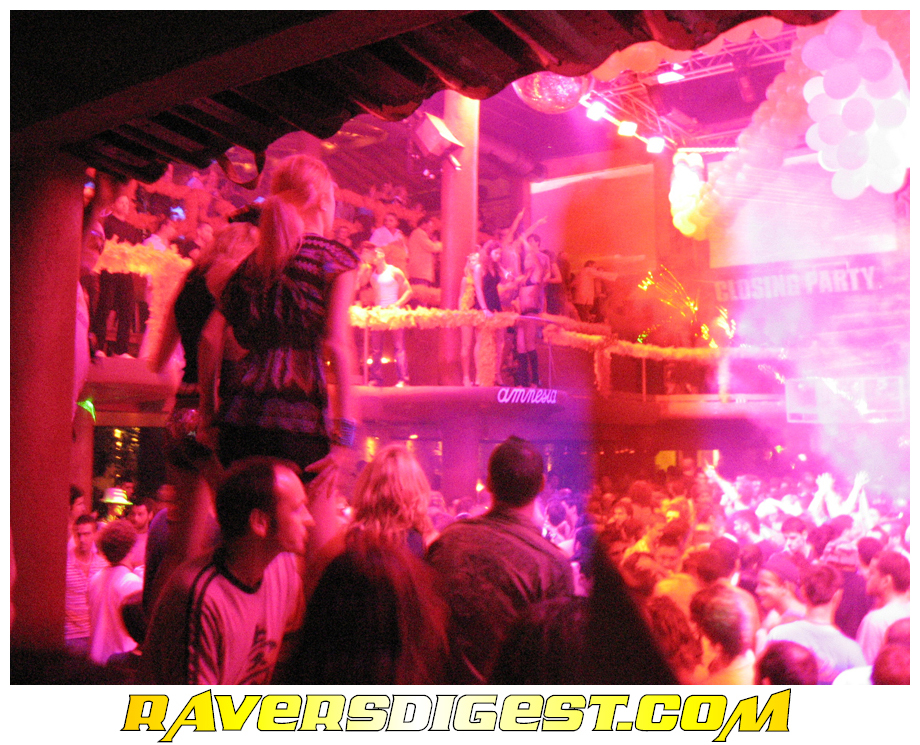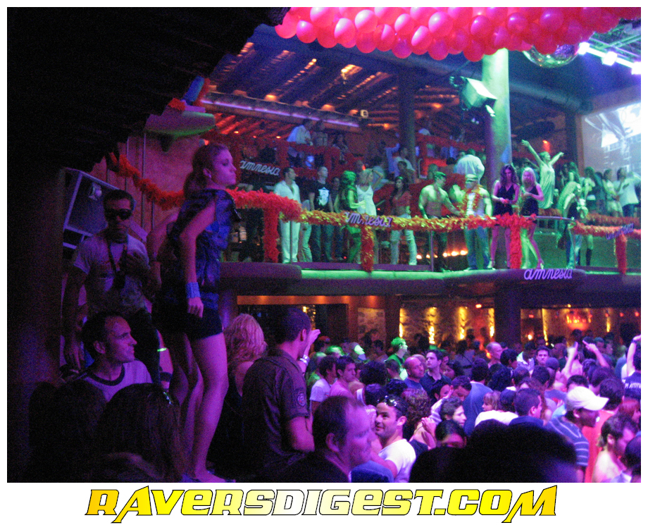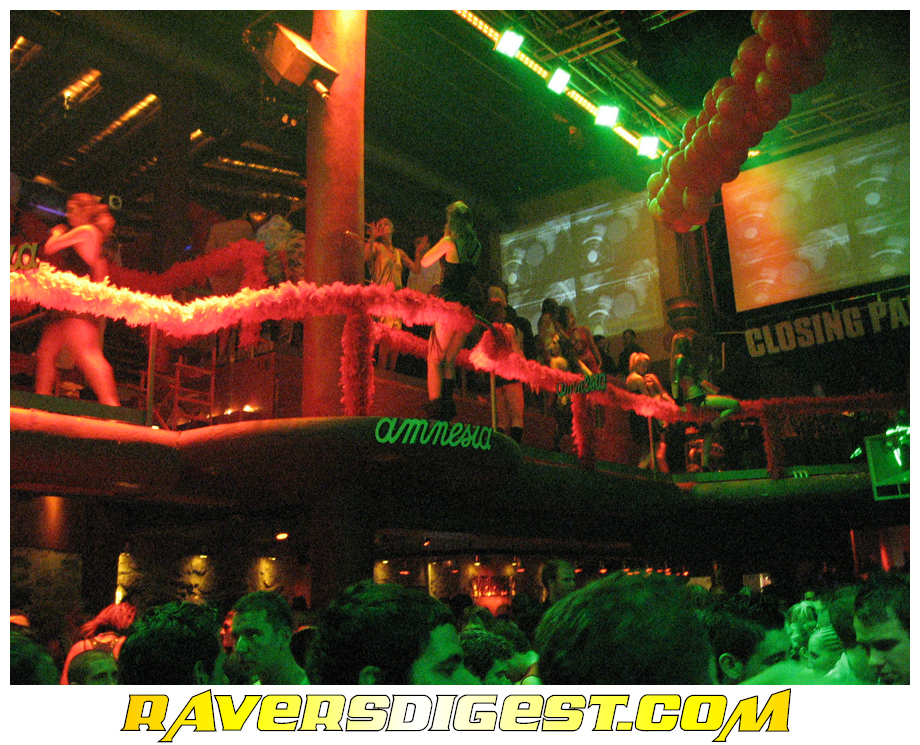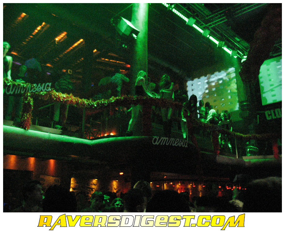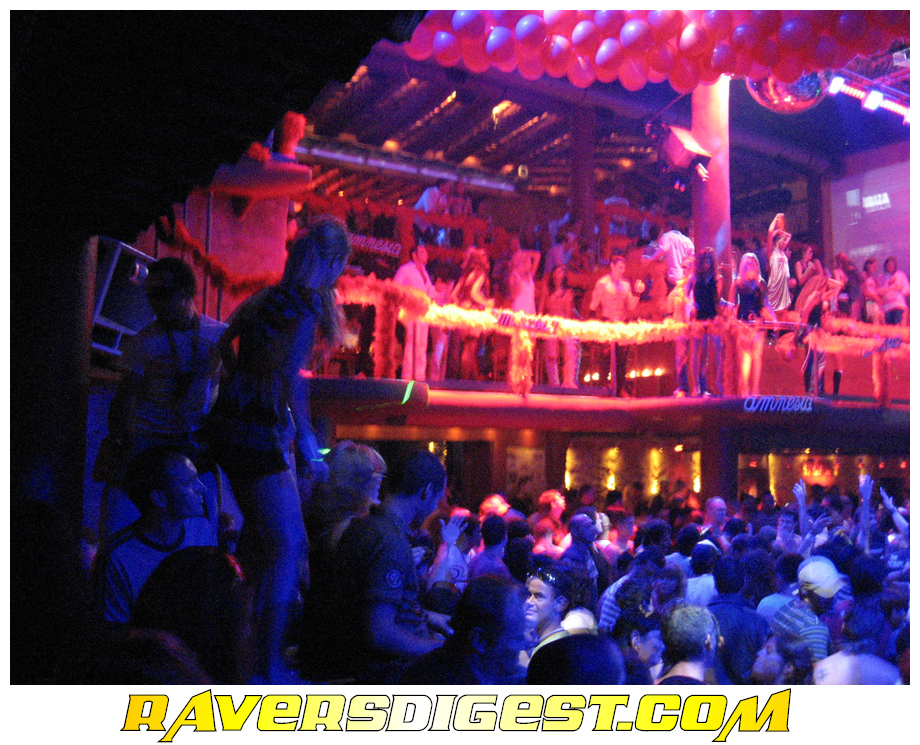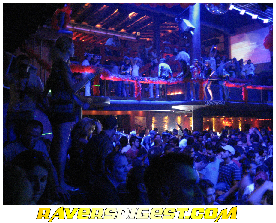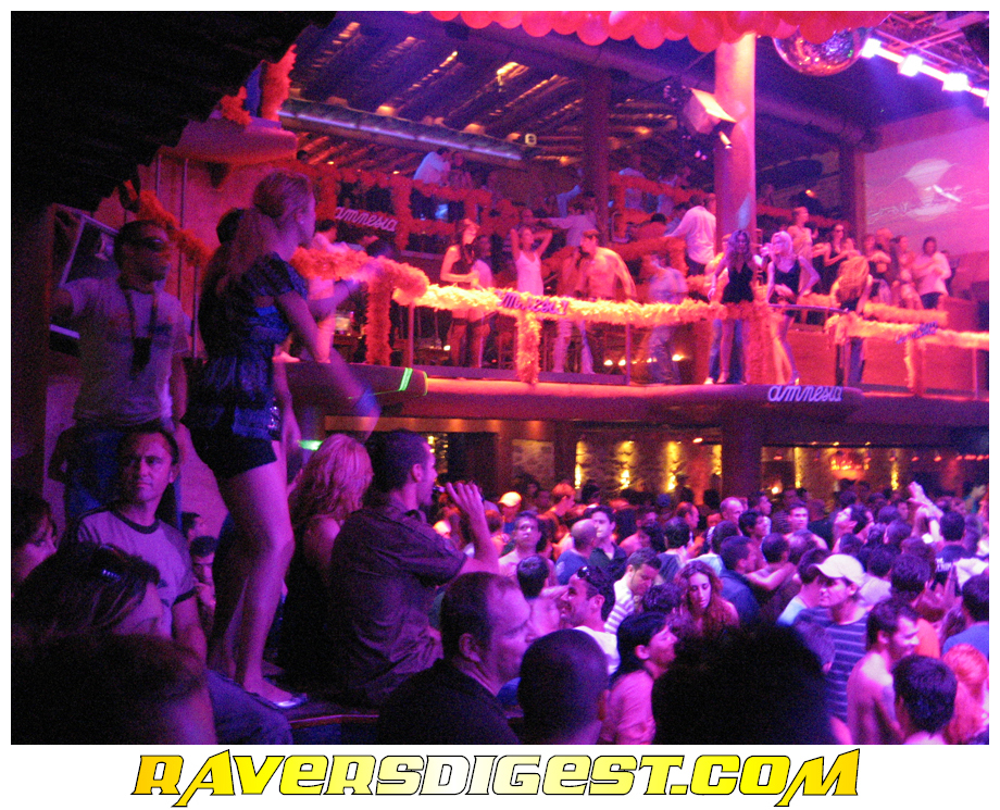 IBIZA FUKIN ISLAND: DAY 2, AMNESIA Amnesia, as in “what just happened?”is a major club on Ibiza. Tonight is Amnesia's “closing party for 2007” We wake up at 9:00 pm from an 8 hour slumber with mental and physiological (metaphorical) batteries fully charged. It is time to close out the party season. At 9:00 am when I return to my hotel room, exhausted and totally spent, the club remains open. Amnesia will not close until at least noon. At 10:oo pm we take a cab to the club called Space. I say “space discotech por favor” to the cabbie, and we hang out on the corner. Here we drink 2 Euro cans of Becks, buy tickets for 35 Euros and socialize with local promoters. Remember to make friends in order to get the best info on where to go and what to buy. If you see the same person at the same spot every night, he must be somewhat trustworthy. At Midnight we take a cab to Amnesia, where enormous spotlights sway back and forth in the night. The cab driver drops us off and we pay him 15 Euros, which is think is a far better option that the hassle of a rental car. The guest list line and the line to buy tickets are both long, at least 50 people deep, but since we already have tickets, we walk right in. In a way, I felt right at home, so I will just go ahead and say it ... Just like that, just that fast, “WE WERE IN!!” Right away, it is obvious that Amnesia simply blows Pasha away. Impressive. Big rooms, wild decorations, and what some say is the world's best sounds system. So loud, so clean !! A huge white ball bounces around the crowd as steady House music pulsed. The cardiovascular regularity of the music in this room is cool for a while, but a bit monotonous. Although it is a stereotype of all dance music that is all sounds the same, this was really close to actually being the same. Void of verbs, with just a House kicker and some midrange detail. The floor was packed to the point that we could not dance, but instead only do the “Euro Dance”. The Euro Dance is where the dancer keeps hands directly to the sides, usually at waist level with elbows bent. The dancer wiggles and poses in an imaginary vertical tube 24 inches in diameter (only 18 inches for the girls) in order to save space as most clubs are packed. A boring dance? Yes, but it has another advantage is that it also saves energy, which is very important if you want to dance until 9 a.m. 11 a.m. or even 4 p.m. A few hours of this and it was time to check out what must be called the “good room” which was off to the right. GoGo dancers lined the banister on the upper floor, arctic blasts of cold air rushed through the crowd, and a guy with an electric violin jammed out in sync with the music. An excellent example of how techno can be made better with a live performance. The music in this room was much more entertaining with its dramatic builds, massive drops, and epic breakdowns. The lights, lasers, Arctic Blasts, violinist and crowd were all in harmony. At times it was dark, quiet and calm. Later it was slammin loud and hard, the lights and lasers were turned up to eleven, the violin guy was thrilling and the crowd was euphoric. The arctic blast was a truly surreal sight, especially if you were in the middle of the dance floor in which case you could see only white. Best of all, clean air flowed through the room. Not once was it stuffy, hot, or polluted. Very well sorted out, as close to perfect as you could expect with so many people in such a small area. It was about 6 a.m. And my attention turned to ravers digest. After all, how could I travel all the way to Ibiza, dance with so many beautiful European women, and neglect to capture them with a camera for all to see? One in particular seemed to be the essence of delicate European beauty. Hundreds of frames later (I love digital cameras, that used to be a whole years supply of film) my memory card was full. I guessed that I had at least three really good pictures of her, but could not be sure. It would have been easy to pose her and fire the flash, but a good natural shot is always better than a good staged one in my opinion. As much fun as it was, the time was now 8 a.m. and the music was starting to bore me, so Christy and I headed for the door. “Ooo... the Amnesia Shop!” This club was worthy of a souvenir shirt purchase and this is where we would buy three. One for Christy, and one for myself, as well as one for Sam (number 8, original Ravers Digest Photographer and hardcore party machine) Hope you like the shirt, Sam, you would have loved Amnesia. The place could only be better with a Drum and Bass room, but you knew I was going to say that. A moment later in the Amnesia store who should appear but my stunning subject! “Do you speak English?” I asked. “A little.” she said. “I took about 200 pictures of you in there trying to get one that was perfect.” I said as I showed here what was in my camera. Her name is Regina and we now have each other's email addresses. “Hey Little Cutie, she can stay with us when she comes to the states, right?” Unlikely, I know, but good material for the dream world. |