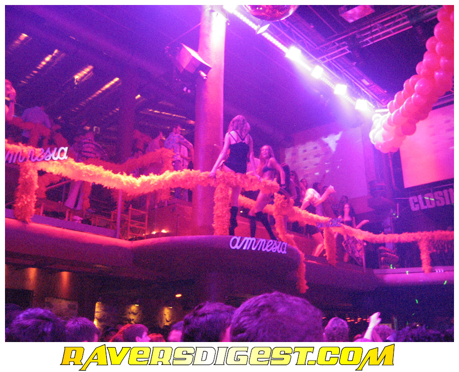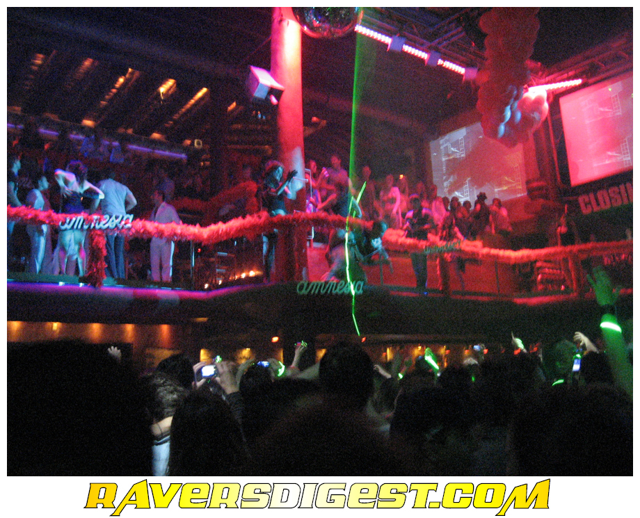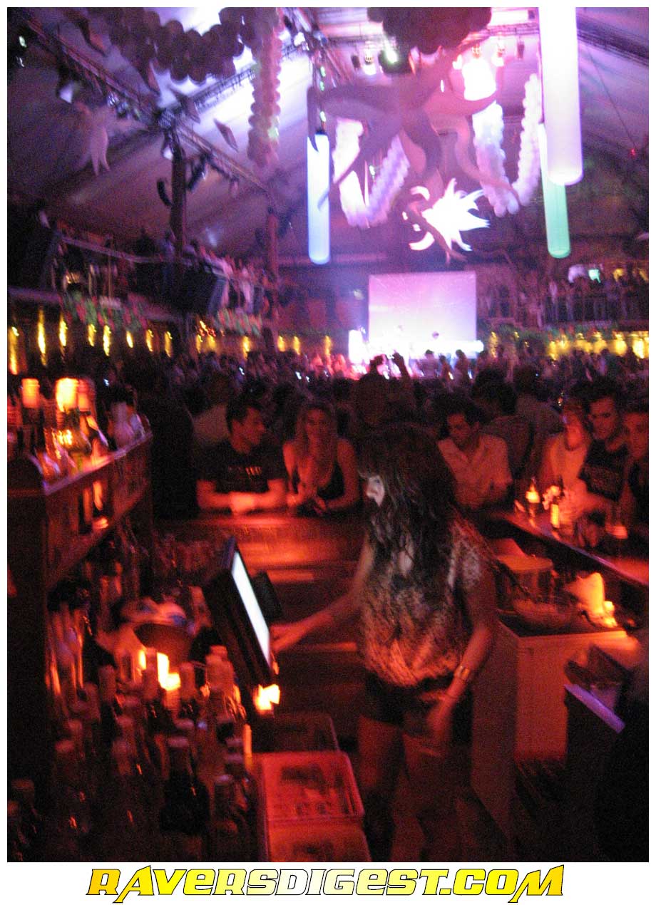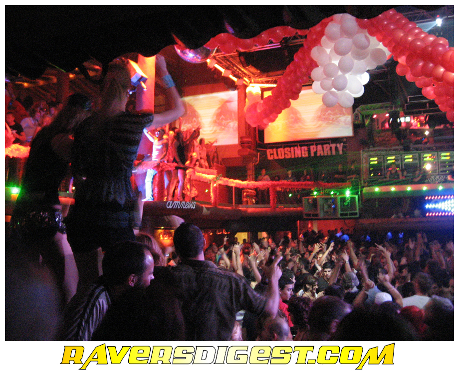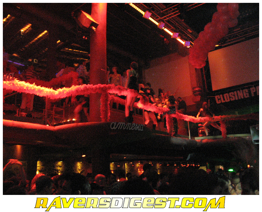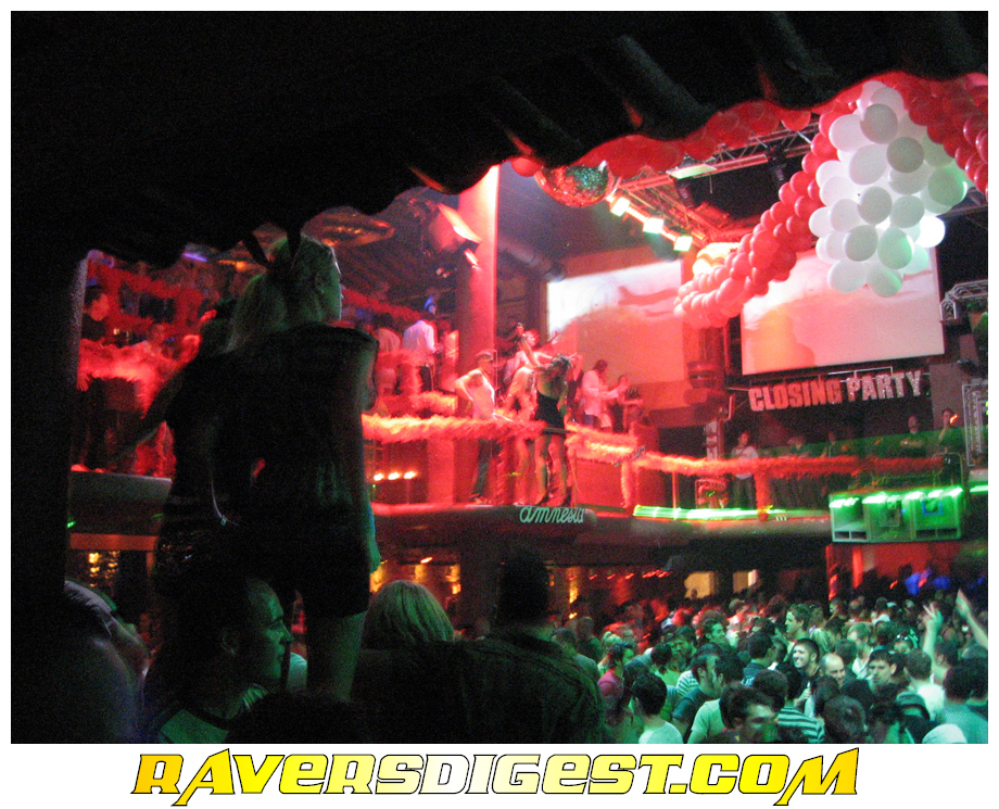 IBIZA FUKIN ISLAND: DAY 2, AMNESIA Amnesia, as in “what just happened?”is a major club on Ibiza. Tonight is Amnesia's “closing party for 2007” We wake up at 9:00 pm from an 8 hour slumber with mental and physiological (metaphorical) batteries fully charged. It is time to close out the party season. At 9:00 am when I return to my hotel room, exhausted and totally spent, the club remains open. Amnesia will not close until at least noon. At 10:oo pm we take a cab to the club called Space. I say “space discotech por favor” to the cabbie, and we hang out on the corner. Here we drink 2 Euro cans of Becks, buy tickets for 35 Euros and socialize with local promoters. Remember to make friends in order to get the best info on where to go and what to buy. If you see the same person at the same spot every night, he must be somewhat trustworthy. At Midnight we take a cab to Amnesia, where enormous spotlights sway back and forth in the night. The cab driver drops us off and we pay him 15 Euros, which is think is a far better option that the hassle of a rental car. The guest list line and the line to buy tickets are both long, at least 50 people deep, but since we already have tickets, we walk right in. In a way, I felt right at home, so I will just go ahead and say it ... Just like that, just that fast, “WE WERE IN!!” Right away, it is obvious that Amnesia simply blows Pasha away. Impressive. Big rooms, wild decorations, and what some say is the world's best sounds system. So loud, so clean !! A huge white ball bounces around the crowd as steady House music pulsed. The cardiovascular regularity of the music in this room is cool for a while, but a bit monotonous. Although it is a stereotype of all dance music that is all sounds the same, this was really close to actually being the same. Void of verbs, with just a House kicker and some midrange detail. The floor was packed to the point that we could not dance, but instead only do the “Euro Dance”. The Euro Dance is where the dancer keeps hands directly to the sides, usually at waist level with elbows bent. The dancer wiggles and poses in an imaginary vertical tube 24 inches in diameter (only 18 inches for the girls) in order to save space as most clubs are packed. A boring dance? Yes, but it has another advantage is that it also saves energy, which is very important if you want to dance until 9 a.m. 11 a.m. or even 4 p.m. A few hours of this and it was time to check out what must be called the “good room” which was off to the right. GoGo dancers lined the banister on the upper floor, arctic blasts of cold air rushed through the crowd, and a guy with an electric violin jammed out in sync with the music. An excellent example of how techno can be made better with a live performance. The music in this room was much more entertaining with its dramatic builds, massive drops, and epic breakdowns. The lights, lasers, Arctic Blasts, violinist and crowd were all in harmony. At times it was dark, quiet and calm. Later it was slammin loud and hard, the lights and lasers were turned up to eleven, the violin guy was thrilling and the crowd was euphoric. The arctic blast was a truly surreal sight, especially if you were in the middle of the dance floor in which case you could see only white. Best of all, clean air flowed through the room. Not once was it stuffy, hot, or polluted. Very well sorted out, as close to perfect as you could expect with so many people in such a small area. It was about 6 a.m. And my attention turned to ravers digest. After all, how could I travel all the way to Ibiza, dance with so many beautiful European women, and neglect to capture them with a camera for all to see? One in particular seemed to be the essence of delicate European beauty. Hundreds of frames later (I love digital cameras, that used to be a whole years supply of film) my memory card was full. I guessed that I had at least three really good pictures of her, but could not be sure. It would have been easy to pose her and fire the flash, but a good natural shot is always better than a good staged one in my opinion. As much fun as it was, the time was now 8 a.m. and the music was starting to bore me, so Christy and I headed for the door. “Ooo... the Amnesia Shop!” This club was worthy of a souvenir shirt purchase and this is where we would buy three. One for Christy, and one for myself, as well as one for Sam (number 8, original Ravers Digest Photographer and hardcore party machine) Hope you like the shirt, Sam, you would have loved Amnesia. The place could only be better with a Drum and Bass room, but you knew I was going to say that. A moment later in the Amnesia store who should appear but my stunning subject! “Do you speak English?” I asked. “A little.” she said. “I took about 200 pictures of you in there trying to get one that was perfect.” I said as I showed here what was in my camera. Her name is Regina and we now have each other's email addresses. “Hey Little Cutie, she can stay with us when she comes to the states, right?” Unlikely, I know, but good material for the dream world. |