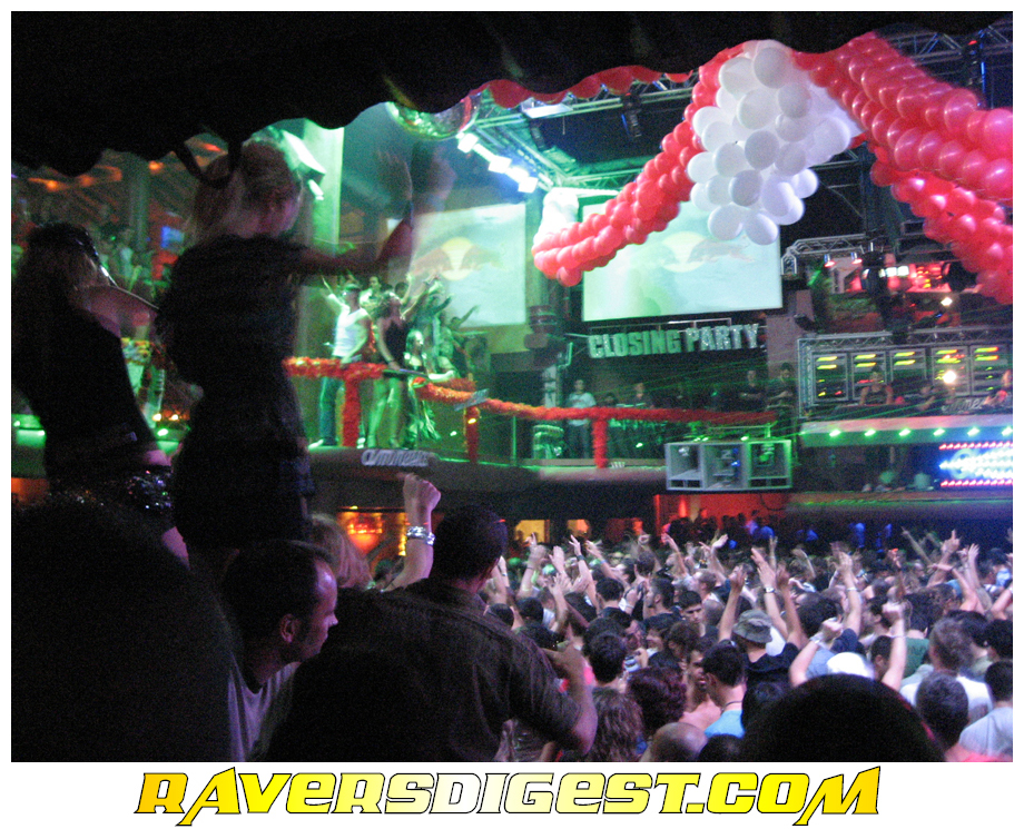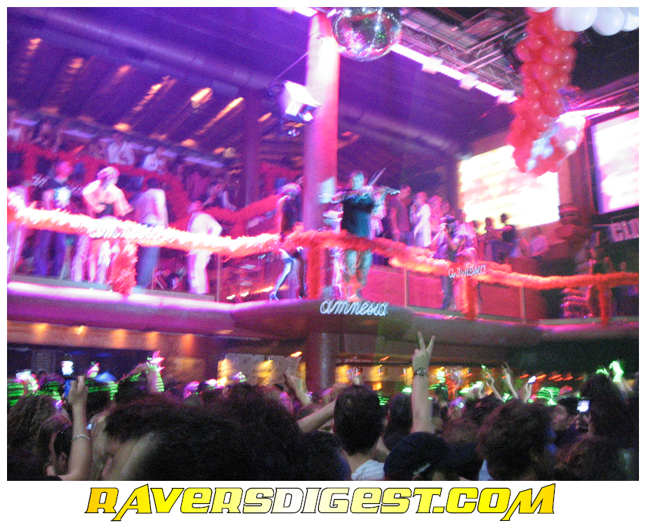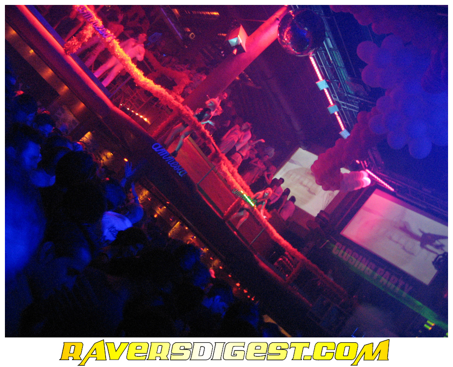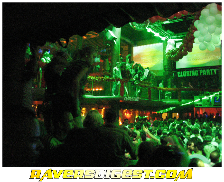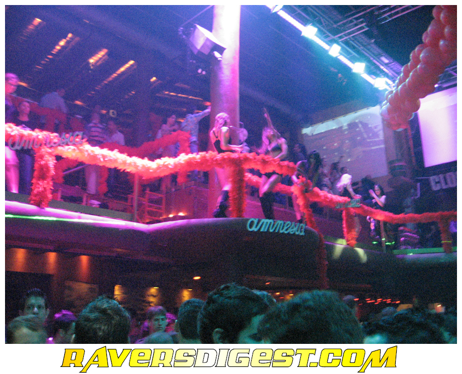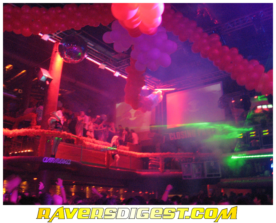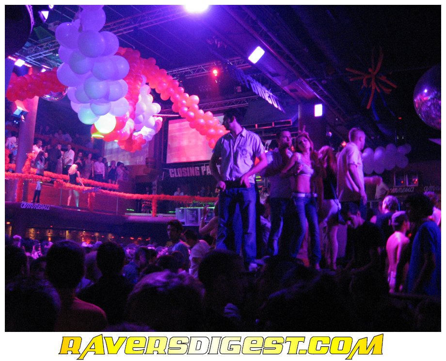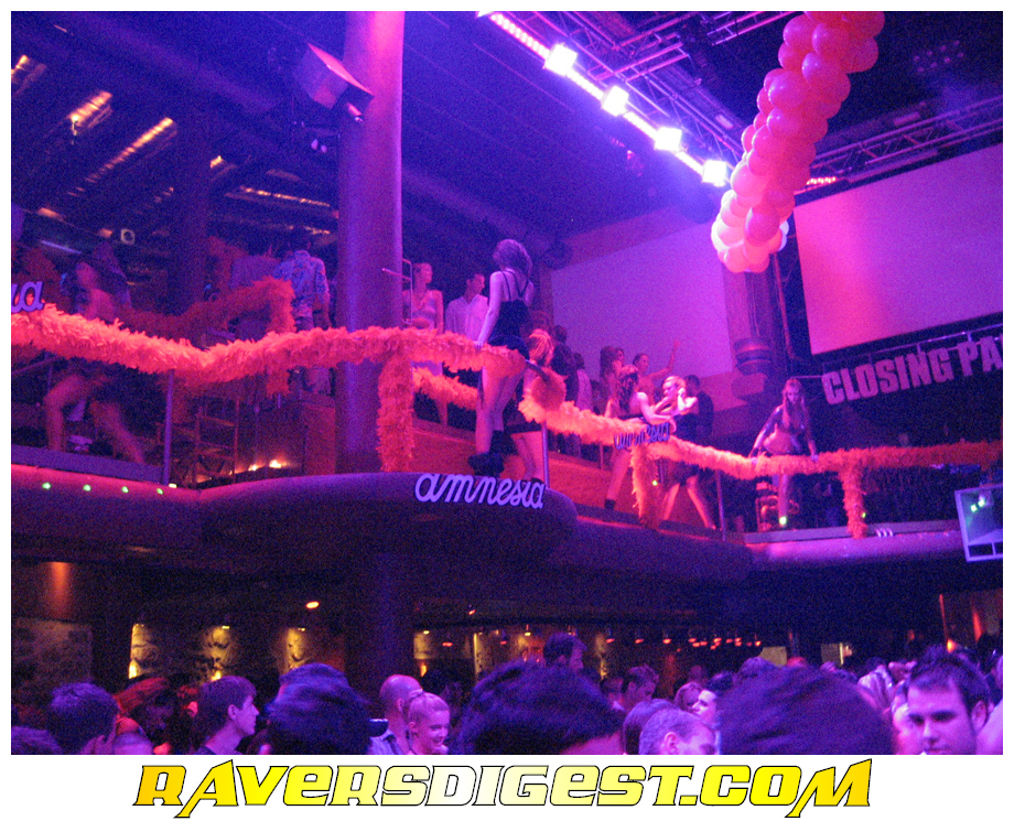 IBIZA FUKIN ISLAND: DAY 2, AMNESIA Amnesia, as in “what just happened?”is a major club on Ibiza. Tonight is Amnesia's “closing party for 2007” We wake up at 9:00 pm from an 8 hour slumber with mental and physiological (metaphorical) batteries fully charged. It is time to close out the party season. At 9:00 am when I return to my hotel room, exhausted and totally spent, the club remains open. Amnesia will not close until at least noon. At 10:oo pm we take a cab to the club called Space. I say “space discotech por favor” to the cabbie, and we hang out on the corner. Here we drink 2 Euro cans of Becks, buy tickets for 35 Euros and socialize with local promoters. Remember to make friends in order to get the best info on where to go and what to buy. If you see the same person at the same spot every night, he must be somewhat trustworthy. At Midnight we take a cab to Amnesia, where enormous spotlights sway back and forth in the night. The cab driver drops us off and we pay him 15 Euros, which is think is a far better option that the hassle of a rental car. The guest list line and the line to buy tickets are both long, at least 50 people deep, but since we already have tickets, we walk right in. In a way, I felt right at home, so I will just go ahead and say it ... Just like that, just that fast, “WE WERE IN!!” Right away, it is obvious that Amnesia simply blows Pasha away. Impressive. Big rooms, wild decorations, and what some say is the world's best sounds system. So loud, so clean !! A huge white ball bounces around the crowd as steady House music pulsed. The cardiovascular regularity of the music in this room is cool for a while, but a bit monotonous. Although it is a stereotype of all dance music that is all sounds the same, this was really close to actually being the same. Void of verbs, with just a House kicker and some midrange detail. The floor was packed to the point that we could not dance, but instead only do the “Euro Dance”. The Euro Dance is where the dancer keeps hands directly to the sides, usually at waist level with elbows bent. The dancer wiggles and poses in an imaginary vertical tube 24 inches in diameter (only 18 inches for the girls) in order to save space as most clubs are packed. A boring dance? Yes, but it has another advantage is that it also saves energy, which is very important if you want to dance until 9 a.m. 11 a.m. or even 4 p.m. A few hours of this and it was time to check out what must be called the “good room” which was off to the right. GoGo dancers lined the banister on the upper floor, arctic blasts of cold air rushed through the crowd, and a guy with an electric violin jammed out in sync with the music. An excellent example of how techno can be made better with a live performance. The music in this room was much more entertaining with its dramatic builds, massive drops, and epic breakdowns. The lights, lasers, Arctic Blasts, violinist and crowd were all in harmony. At times it was dark, quiet and calm. Later it was slammin loud and hard, the lights and lasers were turned up to eleven, the violin guy was thrilling and the crowd was euphoric. The arctic blast was a truly surreal sight, especially if you were in the middle of the dance floor in which case you could see only white. Best of all, clean air flowed through the room. Not once was it stuffy, hot, or polluted. Very well sorted out, as close to perfect as you could expect with so many people in such a small area. It was about 6 a.m. And my attention turned to ravers digest. After all, how could I travel all the way to Ibiza, dance with so many beautiful European women, and neglect to capture them with a camera for all to see? One in particular seemed to be the essence of delicate European beauty. Hundreds of frames later (I love digital cameras, that used to be a whole years supply of film) my memory card was full. I guessed that I had at least three really good pictures of her, but could not be sure. It would have been easy to pose her and fire the flash, but a good natural shot is always better than a good staged one in my opinion. As much fun as it was, the time was now 8 a.m. and the music was starting to bore me, so Christy and I headed for the door. “Ooo... the Amnesia Shop!” This club was worthy of a souvenir shirt purchase and this is where we would buy three. One for Christy, and one for myself, as well as one for Sam (number 8, original Ravers Digest Photographer and hardcore party machine) Hope you like the shirt, Sam, you would have loved Amnesia. The place could only be better with a Drum and Bass room, but you knew I was going to say that. A moment later in the Amnesia store who should appear but my stunning subject! “Do you speak English?” I asked. “A little.” she said. “I took about 200 pictures of you in there trying to get one that was perfect.” I said as I showed here what was in my camera. Her name is Regina and we now have each other's email addresses. “Hey Little Cutie, she can stay with us when she comes to the states, right?” Unlikely, I know, but good material for the dream world. |