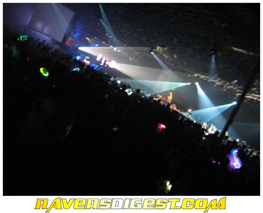 Inside one of the best parties in years. Alone in a crowd of 5,000 people. An outsider, while ironically an insider. Observing, Analyzing. Thinking, thinking a lot about a lot of things, thinking I am too old for this shit, over thinking everything. When I stop thinking, I realize, or maybe I just remember, what the purpose of raving is. Sure raving is about dancing, music, people, freedom and more, but what is the purpose? The answer is simple: RELAX. It sounds simple, but how often does it really happen? To let go, be free, talk to anyone you want, loosen up, stretch, stop thinking about everything else in the world and just dance. Or sit. Or do whatever your heart desires at that moment. My camera, keys, cell phone, ID, cash and blow pop are in the zipper pocket of my camo hoodie, which is balled up at the edge of the dance floor. I'm feeling loose, warm, and inspired by others who step properly to CZR's prototypical House set. The cute brunette girl, Shannon, who I sit next to says "I know this sounds weird, but can I wear your jacket? I'm cold." Perfect, my classic gray scale hoodie camera, keys, cell phone, ID, cash and blow pop are now safe. I mean really really really safe. Shannon is not going anywhere. I help her stand up and put on my hoodie. She sits back down right away. Perfect. Now, warm and with my possessions safe at 3:37 am, I can finally relax. All parts of my body now retain momentum. It takes no effort to move, everything is in motion, the only energy used is to stay in motion. And so I continue through the night and through my life, it takes no effort to continue in this direction. |