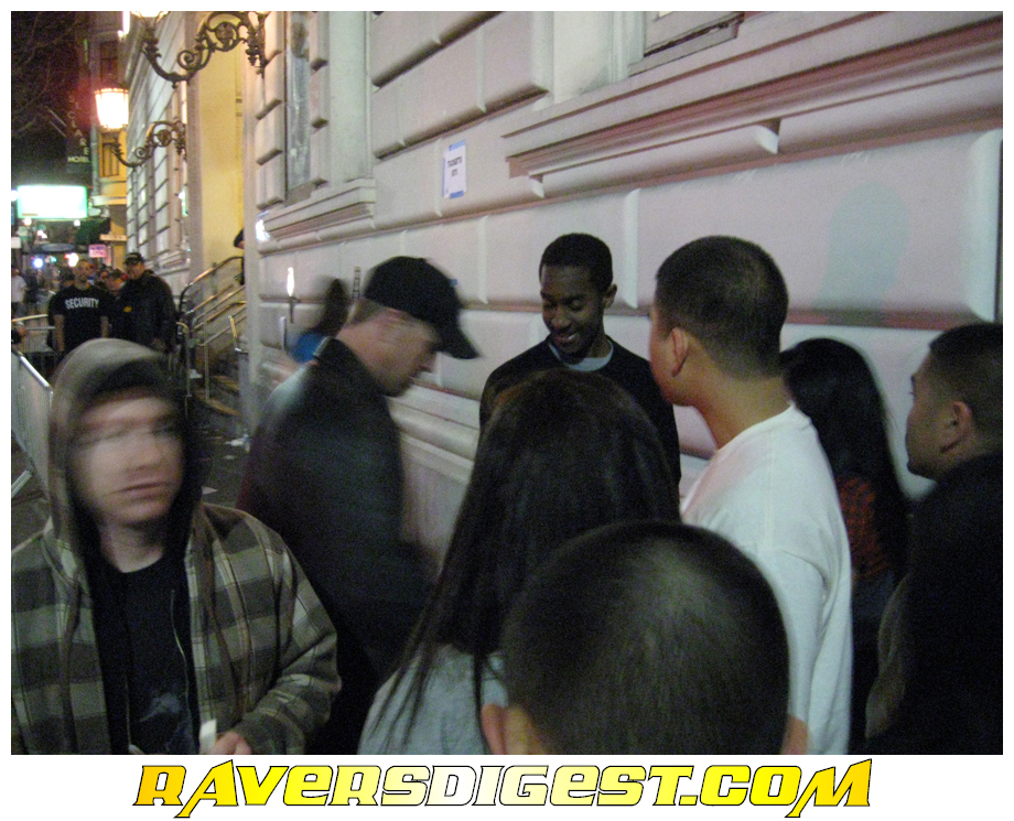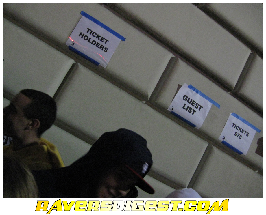 First off, our hotel room was only a mile away from the venue, thus a short cab ride away. Second, and more importantly, a group of young guys let us get in line in front of them to help out Ravers Digest in our never ending quest to produce even more rave coverage.