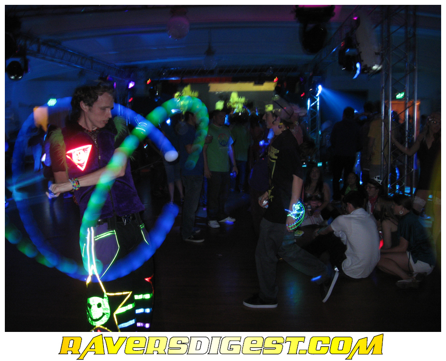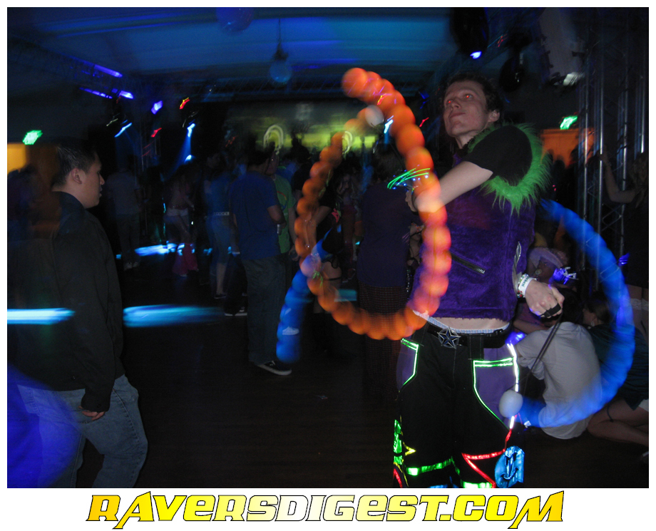 The SoCal scene is huge and powerful and can grow to massive proportions, but the downfall of the SoCal scene also stems from the amount of turnover. Many in the SF scene are long time veterans, so the culture there has had time to grow, and the principles of raving have been passed on from one generation to the next. Some values are critical to the identity of the rave scene, and a delicate balance must be maintained. The freedom to get crazy must be limited by respect for others. The inherent love of music and the joy of dancing are only fully realized when understanding and skill advance beyond the novice level. And while it is great to feel like the whole massive revolves around you and only you, and that everyone and everything is only there for your amusement, which on one hand is true, it is critical that everyone should always act as if the only reason for ever going to a party is to make it the best possible party for everyone else. To give a little back for once in your life. In some ways, raving is a sport, but you don't have to keep score or be concerned with your position. Here it is OK to fall behind and let the world pass you by, in a way, that is the point.