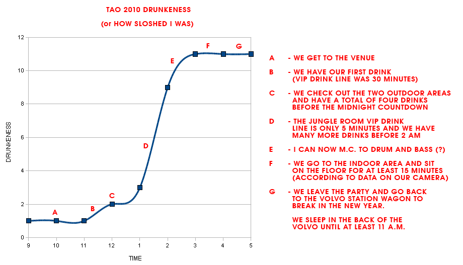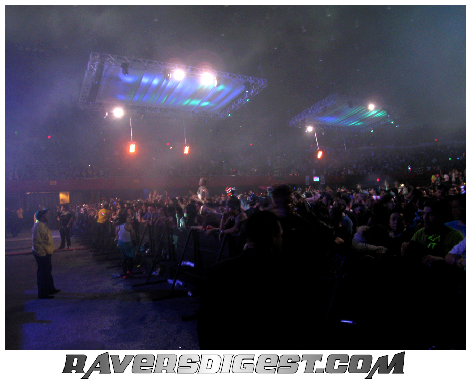 Although we got to the venue at a very timely 9 p.m. we were thrown a dramatic twist. The guest list was not located at the venue, but instead 30 blocks away at 11th and Blane. Oh well, to heck with the guest list. We may as well pay full price and get to inside before it was too late, since driving 30 blocks to the guest list and 30 blocks back was going to be more stress than it was worth, and we had the cash. No reason to let a little money ruin new years eve 2010. Tickets in hand we went through the gen admin line, which was at least short. IOt was not about 11 pm and with plenty of time to spare we were in, enjoying the cool night air of the main outdoor area. we dressed appropriately for a night outdoors since we expected the indoor area to be packed to capacity and closed off, which it was. The next objective was to get some drinks. Christy had a silver VIP bracelet, but my wrist was completely naked, so I waited for her to bring me the first round. 37 minutes later, she handed me 2 Monster and vodkas, which I drank in 37 seconds. Now that we had at least gotten the night started it was time to try and get into the mix. Sadly, the vibe at this years event was hard to find. The crowd seemed a bit pissed, not at the party I think, but just mad at the year 2009 as a whole. I actually kind of liked 2009 and I even kind of liked that everybody was broke. It falls under "what does not kill you makes you stronger" in my book. Of course that is easy to say since I have not lost my home or my car or my income and I have an awesome puppy and Christy and many great friends. I believe that the best way to deal with the current economic situation is to just think the things are going to continue to get better for a long time, even if they are not going to get better quickly. To cheer you up immediately, here is THE RAVERS DIGEST BEST OF 2009 Genre of the Year: DUBSTEP - full of possibilities and just now starting to get really fucking awesome, dubstep is powerful, complicated, and soulful, and positioned exactly where Jungle/DnB was in the year 2000. Event of the Year: ETD Love by Skillz - of course this is 100% purely subjective and I only went to about 20 events all year, but I had more fun here than at any other party so big up to Skillz. Artist of the year: D:FUSE - with all of the classic skills of a house DJ, and the ability to infuse his own live set with live music, by playing the electronic drums while spinning, D:FUSE is very special indeed. DJ of the Year: Plastician - before you say "what?" or "who?" you simply must SEE the Plasticman behind the decks. Twisting and tweaking knobs frantically but precisely, I crown him "Dubsteps Greatest Hero" Up and Coming LA Production Company: FRESH Entertainment - its all about the music. US Production Company: Go Ventures - I went to Big Wig Shin Dig in August of 2000, and that was the Go Ventures 10 Year Anniversary, so that means that Go Ventures has been throwing parties for almost 20 YEARS !!! Go Ventures now throws events in Los Angeles and Las Vegas, (Love Festival and Fabulous) and will hopefully expand into San Diego in 2010. |